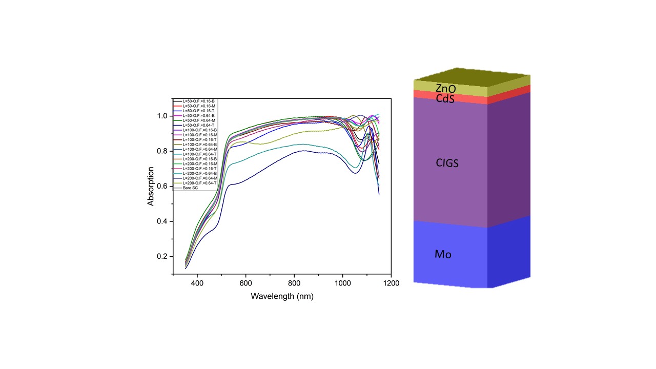 - The research explores the impact of material type, nanostructure size, surface occupancy, and plasmonic nanostructure position on the performance of CIGS solar cells through optical and electrical simulations.